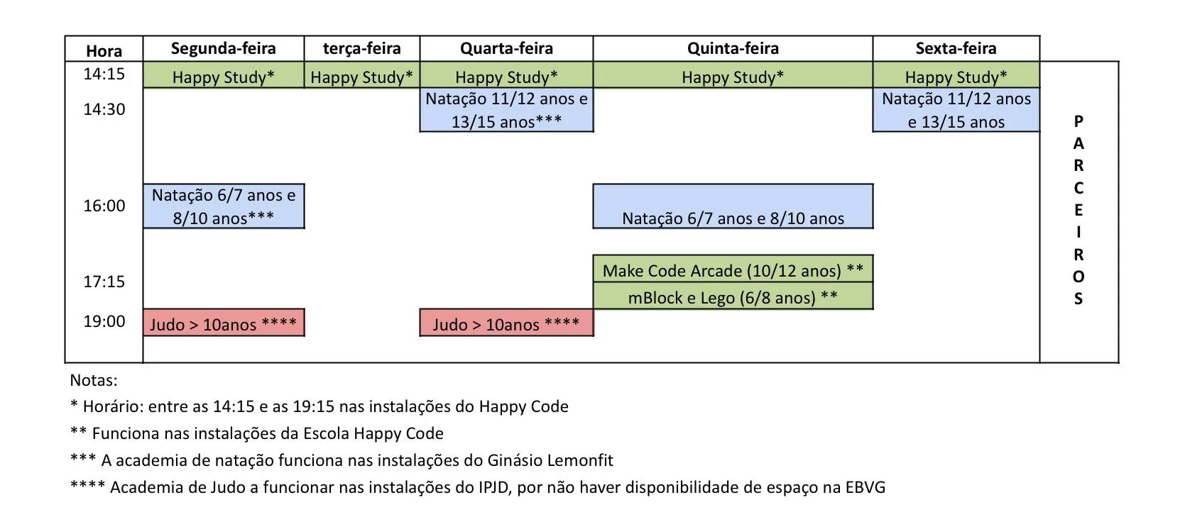 Programação e Sala de estudo Happy Code: oriente@happycode.pt