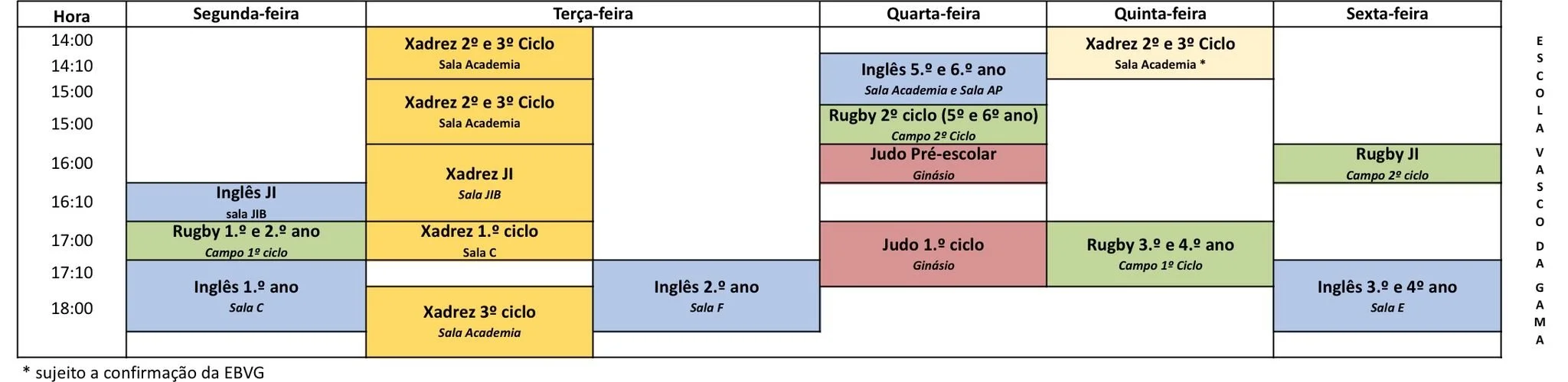 No seguimento do trabalho desenvolvido no ano lectivo passado pela APPEVG para dinamizar academias para os alunos da Escola Básica Vasco da Gama, em 2025-26 repetimos a iniciativa no sentido de ajudar as famílias a encontrarem actividades complementares para os seus filhos.